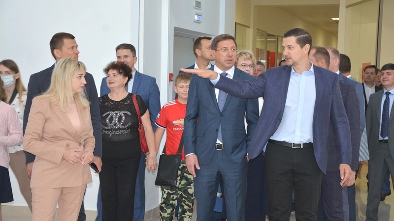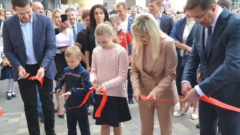 Вместе с юными спортсменами Дмитрий Гусев, Ольга Павлова и Александр Сергиенко по традиции перерезали красную ленту. Затем они осмотрели ледовую арену и расположенный в здании фудкорт.