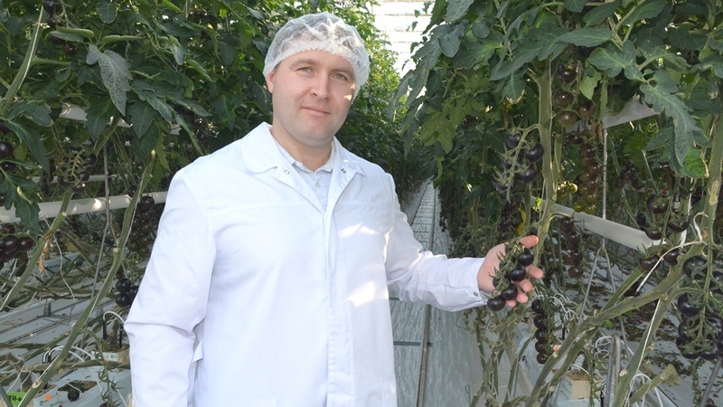 «Есть у нас и уникальные гибриды, которые больше нигде не встретишь, – сказал Владимир Александрович. – Например, черри премиальный. Также сейчас мы запустили новый гибрид тёмноплодного томата красивого шоколадного цвета. Есть рустикальный томат. Это новое веяние. Он не такой красивый, как остальные: ребристый, корявый немножко, выглядит так, как будто только с бабушкиной грядки. Но он очень вкусный и настолько нежный, что при сборе его нельзя в два слоя класть в тару».