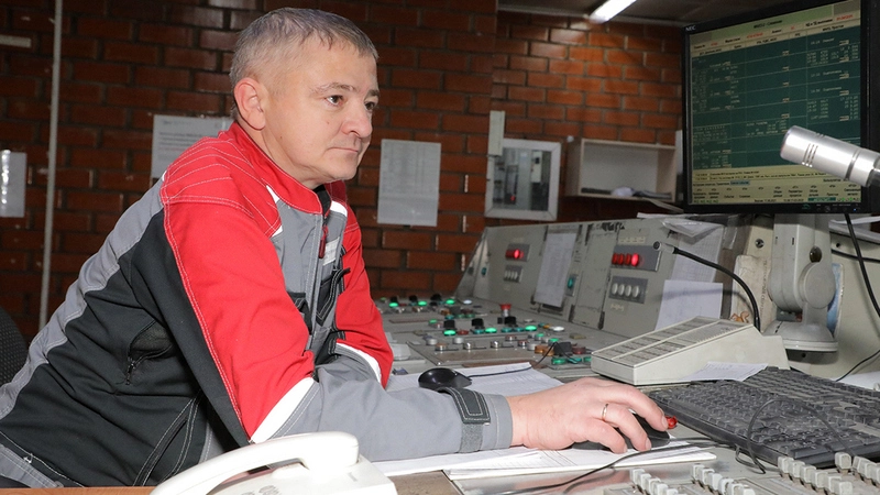 Разгоняев ведет подготовку агрегата к работе. Контролирует разливку, что требует отличных знаний множества параметров и хорошей физической подготовки.