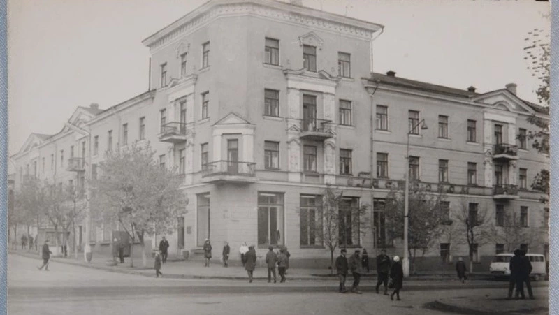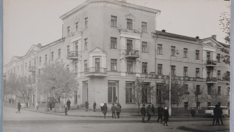 Дом на углу улиц Ленина и Комсомольской, согласно данным Росреестра, построен в 1953 году, хотя известный старооскольский краевед Анатолий Никулов указывает годом начала строительства 1954-й. Здание возводили по проекту Воронежского проектного института «Граждан проект».