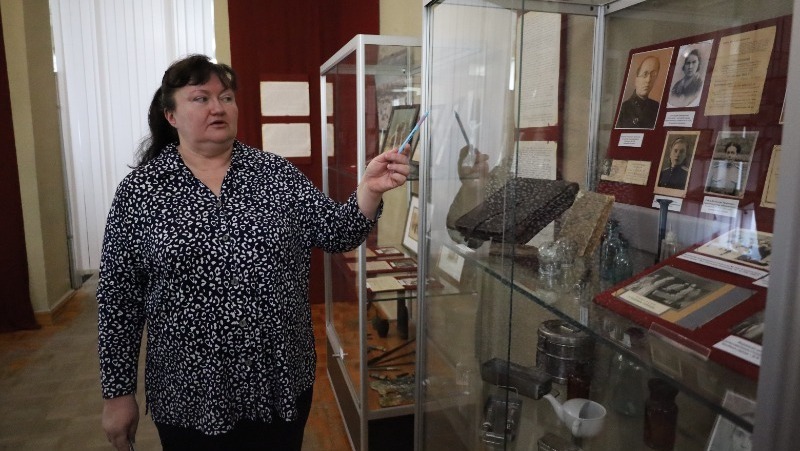 Воспоминаниями своего отца о военных годах поделилась с юными гостями музея дочь участника Великой Отечественной войны Евгения Андриановича Иванова – Анна Чечнева. Евгений Андрианович участвовал в Сталинградской и Курской битвах, награждён множеством медалей и орденом Отечественной войны I степени. Он прожил долгую жизнь в родном Старом Осколе, отметив 100-летний юбилей. Стал тренером и наставником для десятков юных акробатов и гимнастов. Анна Евгеньевна позволила школьникам полистать подлинную книжку штурмана, принадлежавшую её свёкру – участнику Великой Отечественной войны, лётчику Анатолию Константиновичу Чечневу, дважды кавалеру орденов Красной Звезды, Красного Знамени и Отечественной войны II степени. После войны он работал в Старом Осколе начальником аварийной службы газа. Выставка «Рассказы о войне» будет работать до 16 марта.