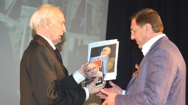 Глава администрации округа Александр Сергиенко вручил легендарному артисту подарки, в том числе от кондитерской фабрики «Славянка», и выразил искреннюю признательность за его многогранное творчество и огромный вклад в патриотическое воспитание подрастающего поколения.