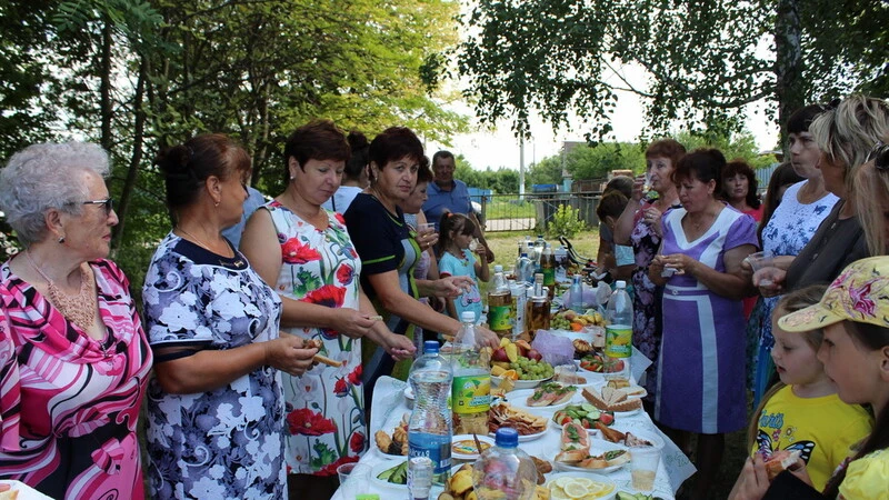 «Мы всей улицей Чапаева угощение готовили. Я котлеты, блинчики жарила, молодёжь, Марина с Максимом, – шашлыки. Ко мне много гостей приезжает, и я люблю готовить, – призналась мне местная жительница Мария Сапрыкина. – Вот мои малосольные огурчики, попробуйте. Рецепт прост: срезаем концы у свежих огурцов, окунаем в соль, нарезаем укроп, давим чеснок. Всё это складываем в полиэтиленовый пакет, перемешиваем и оставляем до утра. Ешьте с удовольствием! Работала раньше я в городе, а десять лет назад вернулась в родительский дом. Люблю свою землю. И день села – прекрасный праздник. Хорошо, что вернули традицию с застольем. Что люди видят, кроме работы?! А здесь они могут прийти, повеселиться и поговорить с соседями. И это здорово!»