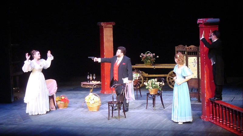 Ярким фейерверком взорвался на сцене спектакль «Ах, Оффенбах» курса профессора Александра Бармака музыкального факультета ГИТИСа. На профессиональной сцене студенты играли впервые, но держались отлично, успешно продемонстрировали свои умения и навыки – актёрские и вокальные. В спектакль вместилось сразу три оперетты. В «Свадьбе при фонарях» удалась сцена дамской драки, да и вообще весь вечер женщины на сцене поражали темпераментом – как в любви, так и в бою. В «Дамах рынка» героини сначала бьются за любовь, потом – за право считаться матерью взрослой дочери, которая вообще‑то готова признать роднёй любую из претенденток. В финале, конечно, воцарились радость, любовь и хор прекрасных голосов. Впрочем, сюжет тут большой роли не играет. Удовольствие доставляет следить за тем, как они это делают, слушать пение, смеяться вместе над глупыми ситуациями и забавными персонажами.