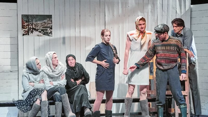 «Полтора года назад мы совершили 10-дневную экспедицию в родные места Виктора Астафьева, в Красноярский край, в деревню Овсянка, – рассказала педагог курса Виктора Рыжакова актриса театра «Сатирикон» Марина Дровосекова. – Встречались с людьми, которые знали писателя, собирали всякие истории. Сюжета в спектакле нет. Главный персонаж – это текст Астафьева, как его слышат сейчас, как он отзывается в молодых людях XXI века. Астафьевская проза удивительна искренностью, пронзительностью, он знал что‑то такое сокровенное о человеческой душе».
