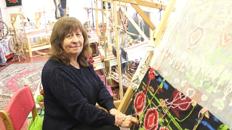 Традиционный курский шерстяной ковёр размером 120 на 140 см ряд за рядом создаёт на гобеленовой раме мастер Дома ремёсел Татьяна Банникова. Работа эта очень кропотливая – в месяц прибавляется примерно по 10 см.