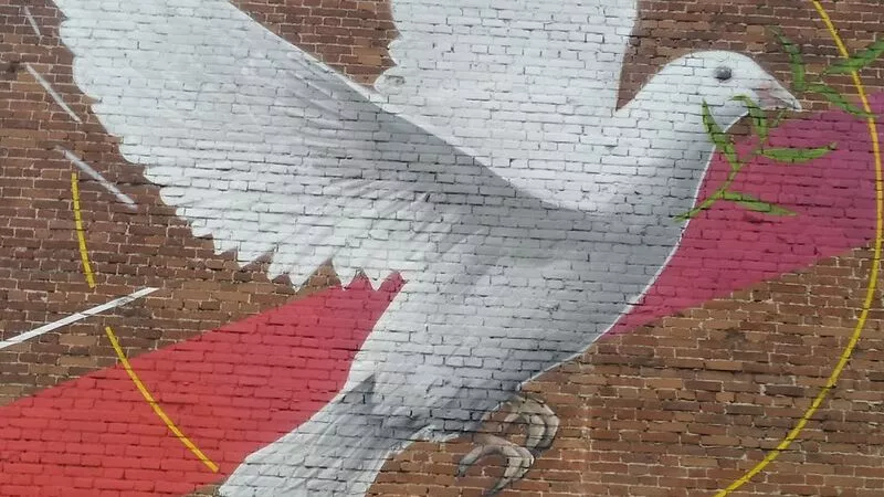 Прежде чем приступить к творческой части, Андрей привёл в порядок сам «холст», а точнее – стену, которая дала немалую трещину. Изъян устранили, и после месяца кропотливого труда безликая стена превратилась в арт-объект. Символично, что голубь мира украсил наш город в год 75-летия Великой Победы.