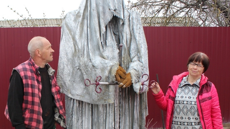 Мимо дома Смирновых просто так не проехать — обязательно остановишься, чтобы лучше рассмотреть, что за необычные фигуры украшают их двор. Когда в интернете появились первые фотографии и видео парящего над землёй призрака в маске из фильма «Крик», журналисты издательского дома «Оскольский Край» решили познакомиться с хозяевами усадьбы.