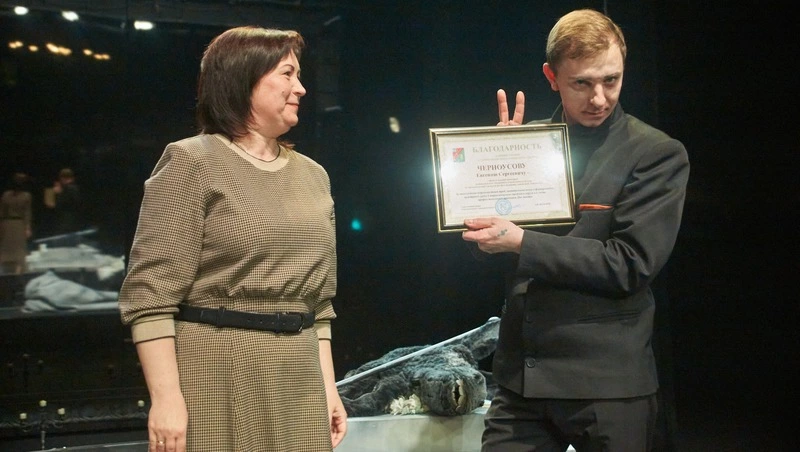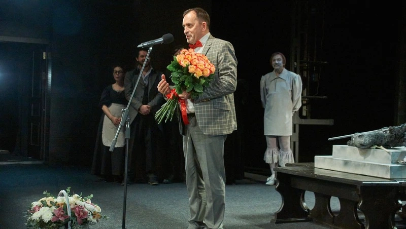 «Сегодня состоялся необычный спектакль, какой-то другой. Я чувствовал себя как будто среди тех, кто играл эту пьесу. Поздравляю с праздником всех нас, весь город, всю Россию», – сказал Сергей Александрович и вручил большой букет Максиму Меламедову.