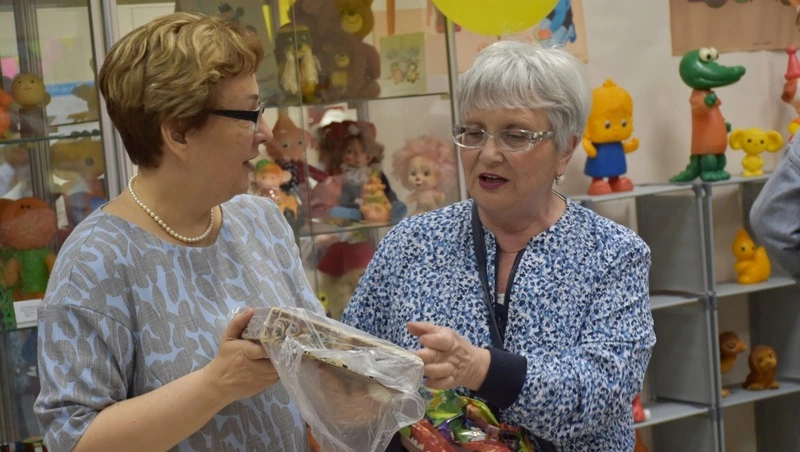Открытие выставки получилось очень душевным. Одна из гостей, работница детской модельной библиотеки № 12 Татьяна Росихина подарила музею набор кубиков 1970-х годов в идеальном состоянии – ещё один ценный экземпляр в коллекцию.