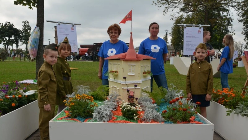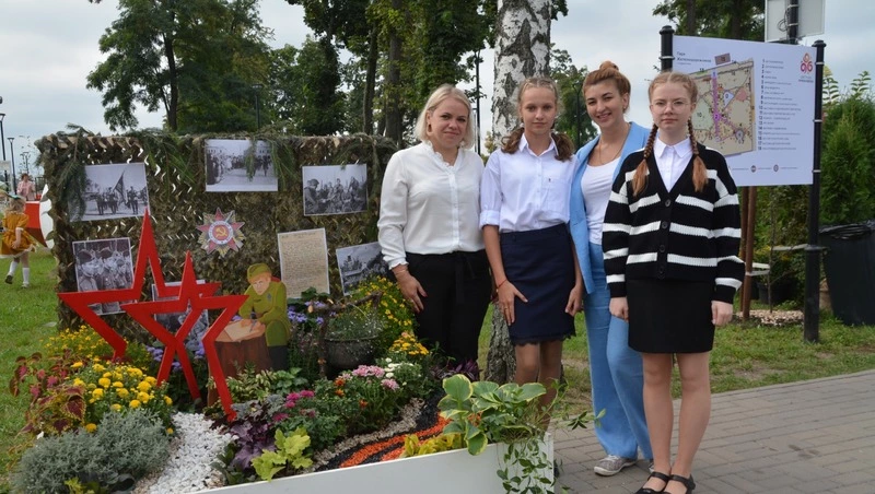 «В нашу композицию мы включили большое разнообразие цветов. Здесь и бархатцы, в том числе узколистные, агератум, различные виды хризантем, колюсов. Некоторые из этих цветов выросли у наших педагогов на дачах, некоторые выращивали с детьми в школе - в горшках. Ребята уже хорошо знают особенности тех или иных цветов, ведь каждый год вместе с учениками мы всегда украшаем территорию нашей школы цветниками. Поскольку тематика конкурса патриотическая, цветочную инсталляцию мы дополнили архивными фотографиями времён Великой Отечественной войны. Оригиналы этих фотографий хранятся в нашем школьном музее. А вот архивное письмо солдата родным. Из мелкой морской гальки, которую предварительно покрасили, выложили очертания георгиевской ленточки», - рассказала учитель биологии школы № 27 Наталья Головачёва.