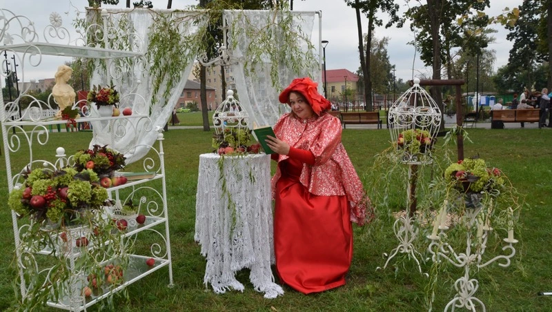 Оригинальные фотозоны создали управляющие компании и ТОСы. Например, председатель ТОС "Малая родина" села Федосеевка Юлия Кожемякина представила сюжет на тему старооскольского дворянства: изящные предметы интерьера украсила главным символом своего села: наливными яблочками, а ещё добавила осенние мотивы – калину и гортензию. Юлия сама сшила и прекрасный костюм, и шляпку, в которых предстала во всей красе на фестивале.