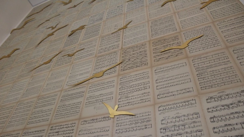 Учебное заведение получилось современным. Но отсылка к прошлому здесь всё же есть: одну из стен лестничного пролёта решили полностью обклеить нотными листами из сборников прошлых лет. А над нотным полем летят золотые птицы, символизирующие путь к успеху учеников школы, а ещё напоминают о её выпускниках. Можно представить, сколько их вышло из этих стен за 30 с лишним лет, пока школа располагается в этом здании! А с момента её основания в этом году исполняется 46 лет.