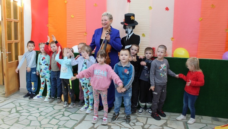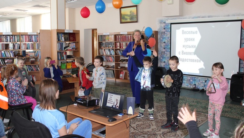 Светлана Борисовна принесла с собой различные музыкальные инструменты: кастаньеты, треугольник, бубен и настоящую дирижёрскую палочку. Всё это ребята могли подержать в руках. Они даже сыграли на инструментах, узнали, кто такой дирижёр и сами попробовали дирижировать. Дети удивились, когда гостья сообщила им, что в оркестре Владимира Спивакова на одной сцене выступают сразу сто музыкантов! Дошколята узнали, как выглядит и как звучит альт, и что от скрипки его отличает больший размер и низкий тембр звучания. Артистка им это продемонстрировала, исполнив на своём любимом инструменте коротенькую мелодию.