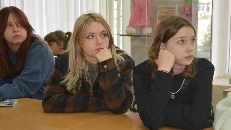 На открытие вставки пришли студенты техникума технологии и дизайна. Им рассказали о народной кукле, об авторе выставки, разрешили подержать в руках экспонаты.