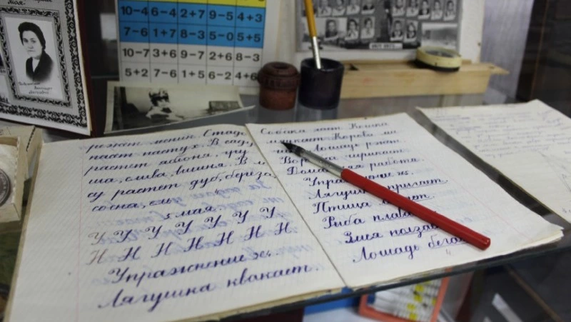 Кто-то воскликнет: «Такой пенал был у меня!», а кто-то узнает свой букварь. Самая ценная реликвия для Ольги Щербаковой – тетрадь её дедушки Александра Михайловича Шамыгина с воспоминаниями о своём школьном детстве. Интересно, что на обратной стороне советских тетрадей можно прочитать текст гимна Советского Союза, торжественное обещание пионеров, правила октябрят и даже наставления школьнику. А в тетради – промокашка. Сейчас дети уже не знают, что это такое.