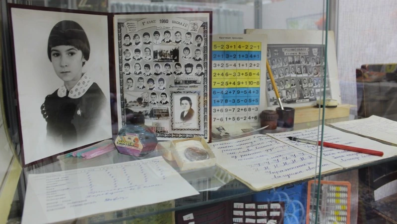 К началу учебного года Ольга дополнила экспозицию разделом «Школьные годы чудесные». До 5 ноября здесь можно видеть ученические принадлежности советской эпохи, похвальные листы, тетради с сочинениями и контрольными работами довоенного времени.
