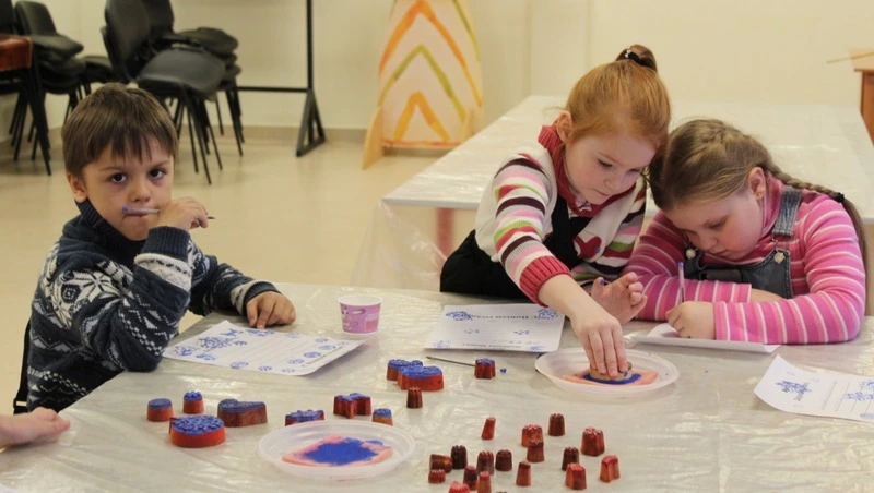 Некоторые участники выставки создали целые композиции на новогоднюю тематику. Кстати, «Ну и ёлочка!» – это не только экспозиция, но и конкурс. Одно из первых мест заняла юная участница Валерия Махмадова. Вместе с братом Артёмом и мамой она придумала и воплотила инсталляцию на тему зимних уличных забав. В качестве основы использовали коробку. Снежные сугробы сделали из гипса. Изготовили фигурки животных, декорации. А сам Артём создал гипсовый барельеф на тему Нового года и раскрасил его гуашью.