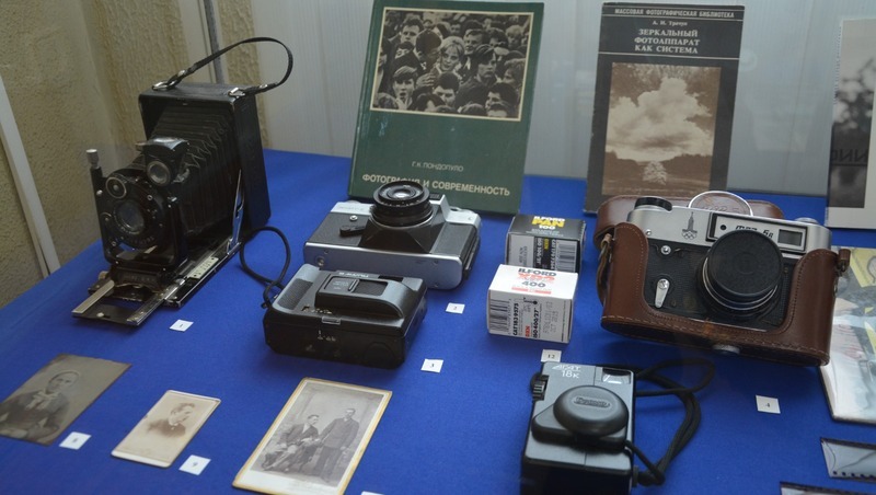 Валентина Быкова представила фотоаппараты различных лет – как отечественные, так и зарубежные, а также старинные фотографии начала XX века, в том числе сделанные на металле. Валентина Александровна уже много лет занимается фотосъёмкой. Её любимые жанры – портретное и репортажное фото.