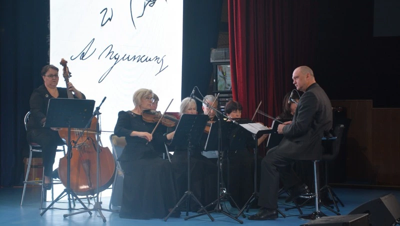 Не только литературное, но и музыкальное творчество очаровывало зал: выступление Марии сопровождала живая классическая музыка в исполнении концертмейстера студии романса «Вдохновение» ЦКР «Горняк» Милы Илясовой и камерного ансамбля преподавателей детской школы искусств № 1 имени М.Г. Эрденко под управлением директора ДШИ Романа Костина.