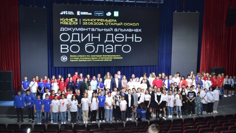 Затем состоялся просмотр фильма-альманаха «Один день во благо». Его длительность 48 минут, а состоит он из восьми сюжетов о людях, занимающихся благотворительностью и волонтёрской деятельностью. Один из них – о людях Белгородчины. За рамками кинокартины пока остались более десятка тематических историй, которые со временем также будут соединены в единый фильм. Всего отснято 20 сюжетов.