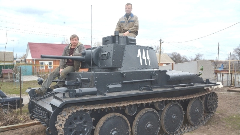 На минувшей неделе из ворот мастерской выехала ещё одна боевая машина – чехословацкий танк «Прага» – LТ-38. Мастера воспроизвели не только внешний вид, но и ходовую часть. Танк может имитировать выстрелы из орудия и пулемётов. Он разработан в 1938 году концерном «ЧКД-Прага» под обозначением TNHP. Отличался простой, рациональной конструкцией. Ведущие колеса с трансмиссией располагались в передней части корпуса. Для облегчения ремонта трансмиссии в полевых условиях в передней части корпуса был сделан большой люк. Вооружение состояло из 37-миллиметровой полуавтоматической пушки и двух 7,92-мм пулемётов. Экипаж – четыре человека. Броня лба корпуса – 25 мм, борта – 16 мм, башни – 25 мм. Двигатель – «Шкода Т11», 120 лошадиных сил. Скорость по шоссе – 35 км/ч. Боевые машины этого класса считаются лёгкими. Вес оригинального танка – 12 тонн. У Шептаевых он весит намного меньше.