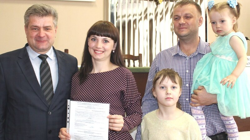 Буквально за два дня до торжественной церемонии Надежде Ведерниковой сообщили приятную новость о предоставлении ей жилищного сертификата. Даже получая документ из рук заместителя главы администрации городского округа по жилищно-коммунальному хозяйству Игоря Щепина, она долго не могла поверить в реальность происходящего. Семья Ведерниковых приехала из Узбекистана. Несколько лет снимают полдома в Федосеевке. Всё то, что было нажито ими на родине, они потеряли, как и надежду на собственное жильё в России.