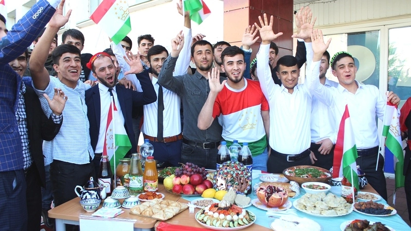 Один из самых богатых столов накрыли 30 студентов из Узбекистана.