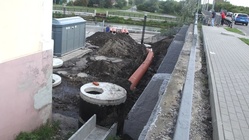 Сейчас эти недостатки устраняются. Мы побывали на набережной в среду. На её окраине, примыкающей к мосту по улице Октябрьской, кипела работа по обустройству системы стока с возвышенной части в реку.