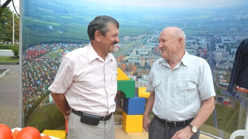 Заслуженный строитель РФ Григорий Попович принимал участие в возведении ОЭМК с первого до последнего колышка, строил дома и другие социальные объекты. Работал в ПСМО ЭМС, тресте «Металлургстрой». Он и сейчас продолжает трудиться. Владимир Михайлов работал в СУ-7 «КМАпроектжилстроя». Строил рынок «Юбилейный», роддом, медсанчасть, школы, дома. Выйдя на заслуженный отдых, продолжает трудиться – работает в УКСе ведущим инженером – главным специалистом отдела контроля. Его трудовой стаж – 49 лет! С Григорием Николаевичем и Владимиром Алексеевичем (на фото) я познакомился в фойе «Горняка», где встретились те, руками которых был построен город. Пришли сюда и ветераны, и нынешние строители.
