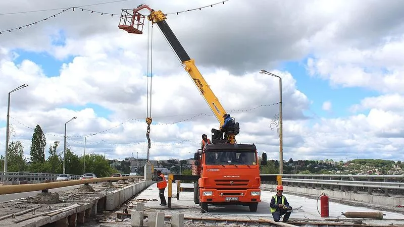 Одновременно идёт ремонт опор – строители укрепляют балки и колонны немецкими качественными материалами, штукатурят конструкции. Так что после капремонта мосту не страшны будут нагрузки и любая непогода.
