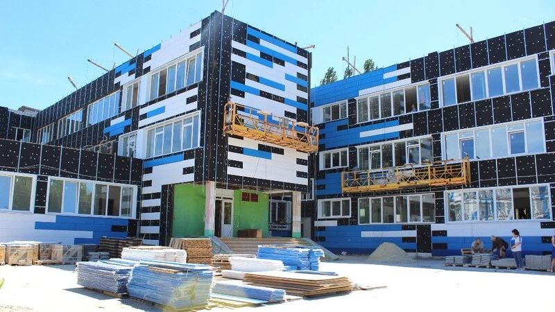 Завершился объезд в основной школе №15. Уже снаружи здание поражает стильной отделкой фасада – он утеплённый, вентилируемый, практически весь уже облицован металлокассетами. В школе заменены системы жизнеобеспечения, внутри ведётся чистовая отделка. Сдать объект планируется в августе. Это учебное заведение, по словам его директора Елены Ореховой, было построено в 1977 году, капремонт ни разу не проводился. Сейчас ремонтные работы идут на первом и третьем этажах. Второй этаж, который занимает школа искусств № 1 имени Эрденко, вероятно, будет ремонтироваться уже в следующем году.