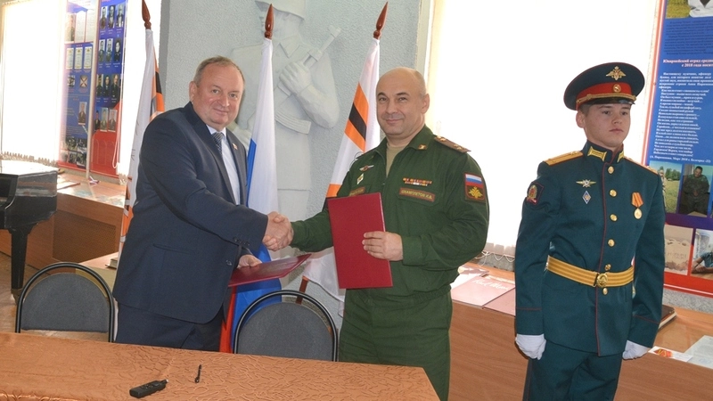 В комнате воинской славы гарнизонного Дома офицеров состоялось подписание договора о сотрудничестве между Старооскольским техникумом агробизнеса и кооперации и войсковой частью № 25624. Планируется проводить совместно различные мероприятия, чтобы ребята на деле узнали о службе в армии.
