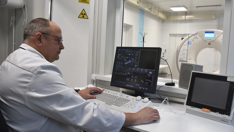 Врачи здесь будут работать в две смены – с 8:00 до 20:00. Смогут пройти обследование амбулаторные пациенты с онкологическими и сердечно-сосудистыми заболеваниями, а также с болезнями лёгких и брюшной полости. В течение смены планируется принимать от 100 до 150 человек. Соответственно, значительно сократится очередь на томографию. Кстати, врачи прошли специальное обучение в Москве.