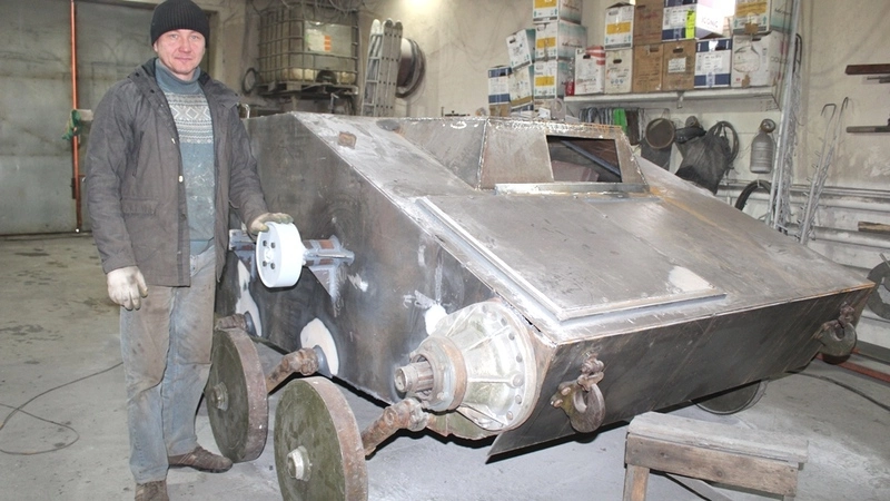 Это будет грозная машина с сердцем труженика, ведь двигатель для этого танка взят от трактора МТЗ-80 «Беларус». Единственной, пожалуй, раритетной деталью станет люк башни времён Великой Отечественной, найденный под Воронежем. Таких люков у Шептаевых два – разной формы, оба варианта изготавливались для танков Т-60. На одном из них можно заметить пулевые отверстия. Скорее всего именно его выберут для новенького танка. Оригинальную деталь очистят от многолетней ржавчины и доварят куски металла, которых не хватает, а вот эти пулевые отверстия сохранят как память о былых битвах.