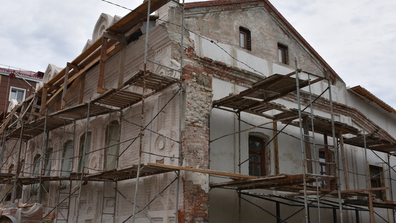 Также прорабатывается вопрос восстановления кирпичной кладки вокруг окон, как это было в первоначальном облике здания. Чертежи согласованы. В стадии подготовки проект подсветки: планируется, что будут подсвечиваться две стены – передняя и главный вход. По словам Марины Хреновой, все работы на переднем фасаде, а также его покраску планируется завершить к 1 сентября.