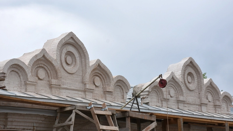 С пригорка, со стороны ЦМИ, сразу же обращаешь внимание на красивые кокошники на крыше здания – полукруглые или килеобразные наружные декоративные элементы, которые украсили кровлю. Пришлось немало постараться, чтобы не только восстановить их, но и вообще найти уникальных специалистов, которые смогли это сделать. Сейчас каменщиков, владеющих искусством старинной круговой кладки, остались считанные единицы. Но, к счастью, они нашлись в нашем городе. Помогли и сохранившиеся дореволюционные фотографии, по которым точь-в‑точь были восстановлены кокошники.