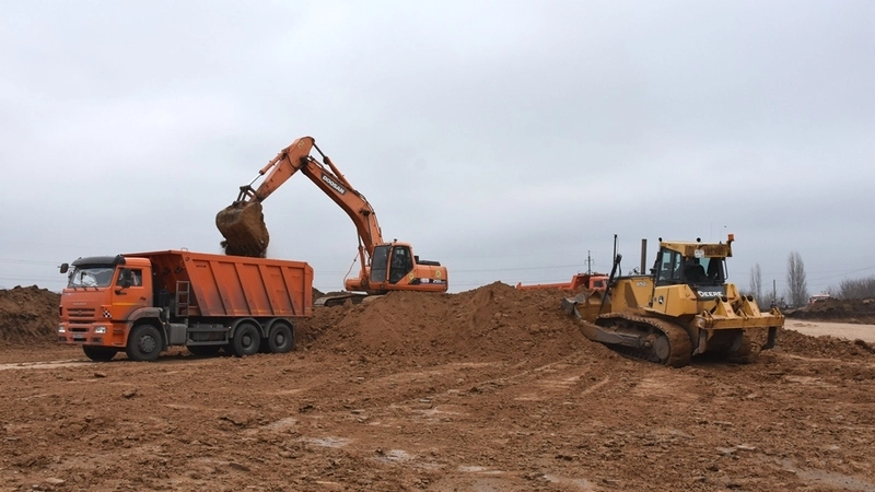 Задействованы десятки единиц различной техники. К экскаваторам то и дело подъезжают КамАЗы. Несколько минут и загруженные под завязку чернозёмом или суглинком автомобили отправляются к месту складирования грунта.