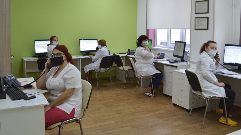 В штате до недавнего времени было 12 сотрудников, а также четыре врача, консультирующих шесть дней в неделю. С началом четвёртой волны коронавируса и распространения штамма «дельта» объём работы резко увеличился. Руководство окружной больницы приняло решение расширить кол-центр. В чистой зоне поликлиники выделили помещение, установили оборудование и набрали дополнительно 20 сотрудников – студентов старших курсов медколледжа и младших медицинских работников. Эта часть центра только заработала, а процесс налажен, будто так всегда и было – компьютеры тихо гудят, операторы ведут переговоры по телефонам, которые звонят снова, стоит только положить трубку.
