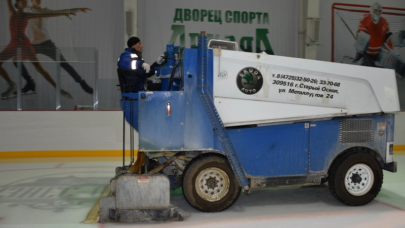 Ледовый комбайн ездит на шипованной резине. Иначе нельзя – скользко! И так же, как на обычном автомобиле, машинист должен соблюдать скоростной режим, ведь если разогнаться, можно и в бортик врезаться. Евгений Бончев хорошо чувствует технику. Если нужно покрыть поверхность тонким слоем воды, он несколько увеличивает скорость, сбавляя её на поворотах, чтобы не занесло. Если же хоккеисты или фигуристы постарались на славу, и на льду остались значительные выбоины, тогда нужно пройти эти участки медленно, заполнить ямки водой.
