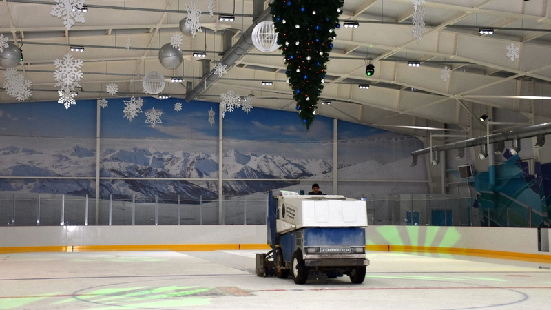 Поскольку в «Аркаде» недавно открылась вторая ледовая арена, мы поинтересовались у Евгения, каким образом готовилось основание под неё и какова технология заливки льда с нуля. Оказывается, подо льдом проложен… тёплый пол! Да, да! Его строители уложили на бетонное основание, сверху – утеплитель, затем – снова бетонная стяжка, на которой уже разместили холодильную установку и опять забетонировали. Финишным покрытием многослойного торта стал лёд, который заливали несколькими слоями. Нижний слой – выравнивающий. На него наносится специальная белая краска, которая, собственно, и придаёт катку тот самый белый цвет, который мы привыкли видеть. Потом ещё несколько миллиметров воды. После того как этот слой замёрзнет, на него клеят линии разметки и рекламные изображения. Сверху постепенно намораживается последний, самый толстый слой ледового покрытия.
