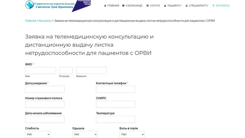 «Безусловно, это очень действенная мера, – рассказал заведующий поликлиникой №2 Никита Суслов. – На сегодняшний день симптомы коронавирусной инфекции во многом схожи с ОРВИ, и методы лечения в общем похожи. В некоторых случаях пациенту, если он чувствует себя не совсем плохо, не обязательно идти в поликлинику. При условии, что у него отсутствуют хронические заболевания, то есть больной не входит в так называемую группу риска, человек может оставить заявку на телемедицинскую консультацию. Сделать это можно, зайдя на сайт больницы святителя Луки Крымского. Там есть кнопка «Заявка на телемедицинскую консультацию и дистанционную выдачу листка нетрудоспособности для пациентов с ОРВИ». При нажатии откроется анкета, где человек оставляет свои данные и телефон, пишет кратко жалобы, подчёркивает, нужен ли ему лист нетрудоспособности. В течение дня с больным свяжется медицинский работник и задаст уточняющие вопросы. При необходимости направляет врачебную бригаду, чтобы осмотреть пациента».