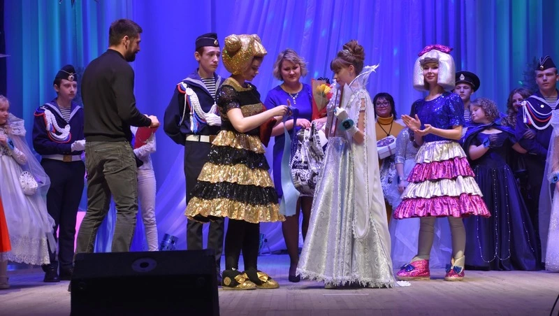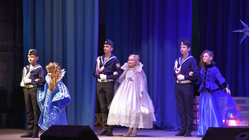 Самым эффектным и долгожданным моментом конкурса стало финальное дефиле юных Снежных королев в красивых платьях. На сцене девочки появились в сопровождении галантных кавалеров – воспитанников военно-морского патриотического клуба «Гардемарин».