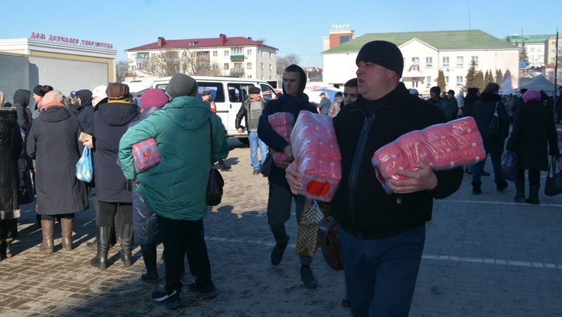 Открытие ярмарки было анонсировано на 10 утра, но задолго до этого часа стартовала продажа самого популярного в последние дни товара – сахара. Как и обещали власти, сладкий песок подвозили по мере распродажи неоднократно. Благодаря тому, что продавали его с нескольких машин, больших очередей не было.