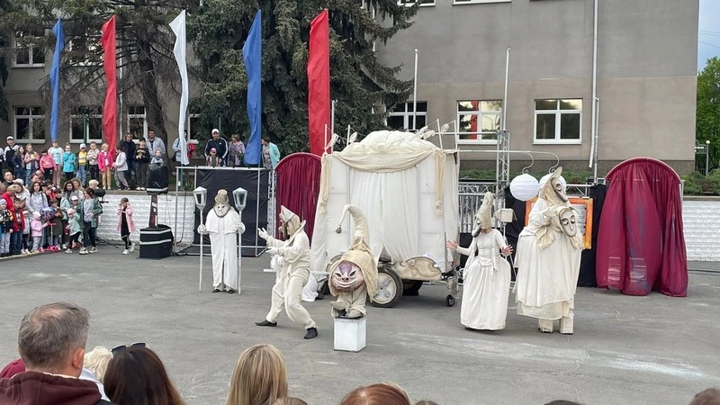 Мероприятие, собравшее коллективы со всей страны, обещало показать жителям двух городов волшебный мир представлений под открытым небом. Всё началось в два часа дня. После приветственных речей официальных лиц ведущий объявил начало фестиваля: «Встречайте! Знаменитый театр из Санкт-Петербурга «Странствующие куклы господина Пежо»!» Толпа обернулась. Под мистическую музыку на площади появилась сказка! Одетые во всё белое шли существа, похожие на людей. Вместо лиц – гротескные маски, вытянутые, немного грустные, с пустыми глазами. А за ними – карета с ангелами. Процессия двигалась медленно, пританцовывая и завораживая зрителей. По спине побежали мурашки. Это было и красиво, и жутко, но очаровало с первых секунд.