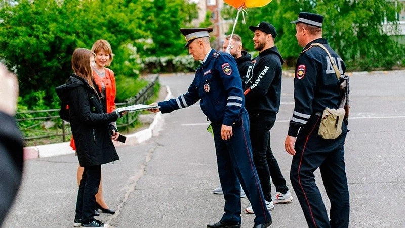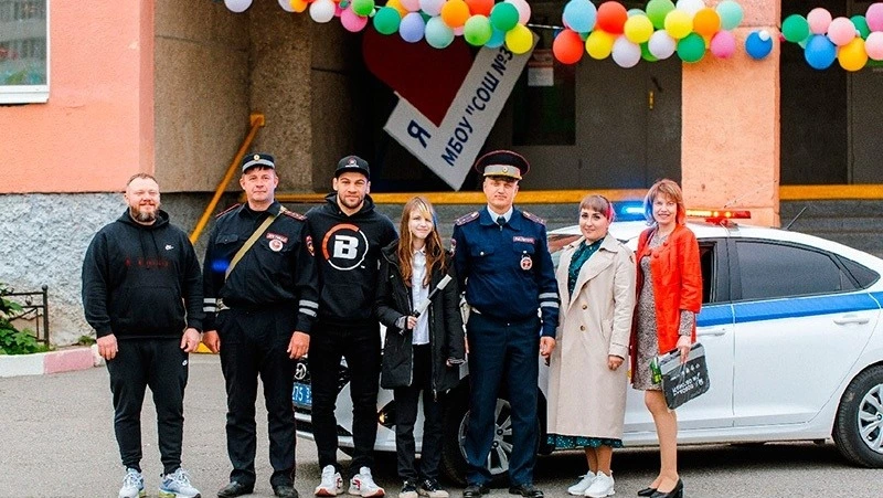 Встречу с Таней организовали в школьном дворе. Там её встретили инспекторы отдельной роты ДПС и общественники, которые поддержали сотрудников ДПС в добром деле: директор автошколы Игорь Жуков, российский боец Анатолий Токов, фотограф Сергей Сальников и команда ТРК «Мир Белогорья».