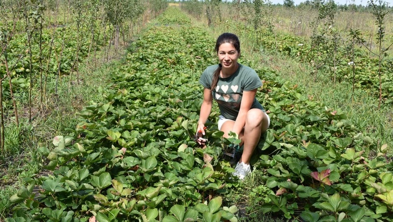 «На этой территории саженцы орехов будут расти два года,– рассказывает Орлов.– Мы используем их, если вдруг не примутся ранее высаженные растения. Там – сад абрикосов, дальше растёт алыча. Немного левее – сливы, яблоки. Хотим организовать свою торговую точку. Цены будут ниже привозных фруктов и овощей. В этом году, например, клубнику продавали по 300 рублей за килограмм, мы– на 50 -100 рублей дешевле. Будем делать на питомнике холодильник-витрину. В планах также установить 10 теплиц. В хозяйстве фермера несколько полей. Планируется увеличить их до 37 гектаров. Дальше, в сторону Незнамово, грецким орехом засеяно 155 гектаров. А всего, включая Федосеевку и район водохранилища, около 500 га. Рядом с орехами растёт клубника. В 2021-м её посадили 1 гектар. Всего планируют засадить ягодой 5 гектаров. Эльвира рассказала, что выращивают семь сортов: «дар-селект», «ханейм», «эми», «азия» и другие. В прошлом году супруги посадили четыре сорта, они начали плодоносить: промышленные сорта сразу дают большой урожай. Конечно, клубника требует тщательного ухода. Очень любит воду. Поэтому используется капельный полив. Чтобы уйти от физического труда приобрели посадочную машину. А ещё планируют установить трёхметровые ягодные тоннели – теплицы для клубники. В планах выделить гектар под малину. По профессии женщина – хореограф. Но решила поддержать мужа в его начинаниях. А ещё она увлекается ниваки – искусством подстрижки кроны и формирования внешнего вида дерева в соответствии с чётко определёнными эстетическими стандартами. Получается очень красиво. – Когда выращиваешь своё и у тебя получается, это дорогого стоит», – делится Эльвира.
