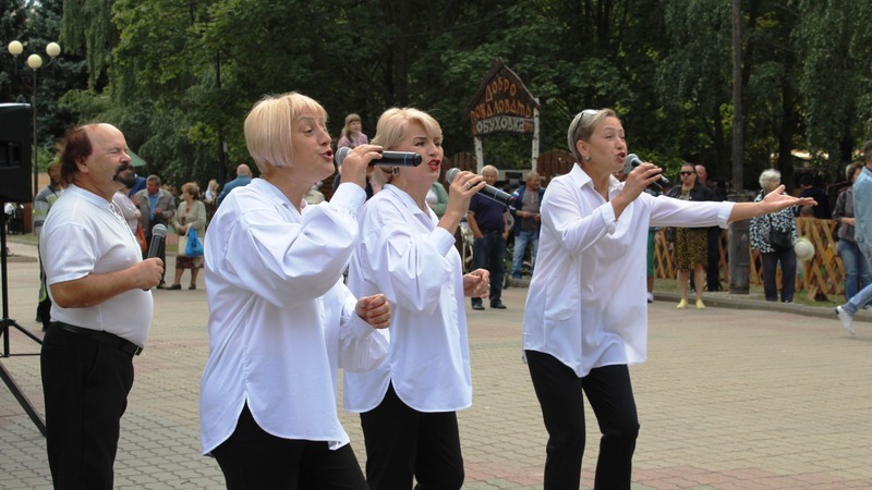 По первому кругу пробу с угощений сняли, теперь можно и на артистов посмотреть. И тут селяне не подкачали. Что ни артистка – красавица, поёт – голос к небу вольной птицей взлетает, что ни артист – орёл, ноту взял – на соседнем микрорайоне услышали. А уж если коллектив на сцену вышел – ноги у честного народа сами в пляс пускаются!