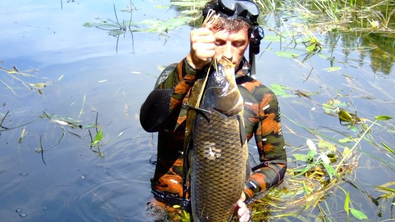 К рыбе зачастую тяжело подобраться. Резкое движение – и она исчезает в глубине. Знакомые рассказывали Андрею, что на Волге рыбы пруд пруди. Он туда и отправился. Надел снаряжение и нырнул. В течение получаса ни одной мало-маломальской плотвы не удалось поймать. Как выяснилось, он слишком быстро и шумно плыл. Впрочем, на Волге он добыл 7-килограммового сома. Самый большой его трофей –13-килограммовый сазан. У нас же поймать жереха весом 5 кг. где-нибудь в районе Валуек уже считается большой удачей.