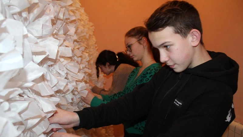 В местном Доме культуры сельские активисты собираются практически ежедневно. Здесь в небольшом кабинете по нескольку часов они занимаются изготовлением сетей. В один из будних дней за работой мы застали Светлану Краснову, Нину Сорокину, Ольгу Шкуркину, Галину Волобуеву и Ирину Сорокину. Женщины кропотливо и с большим усердием вплетали белые ленты в будущую маскировочную сеть для укрытия спецтехники и позиций бойцов СВО. Наравне с ними трудились и школьники, заглянувшие в мастерскую после уроков.